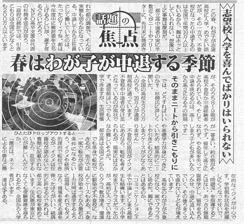 4/8日日刊ゲンダイにもNPO高卒支援会の活動が、載りました!