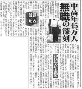 日刊ゲンダイ 中高年45万人 無職の深刻