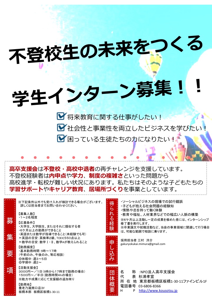 【学生インターン募集】