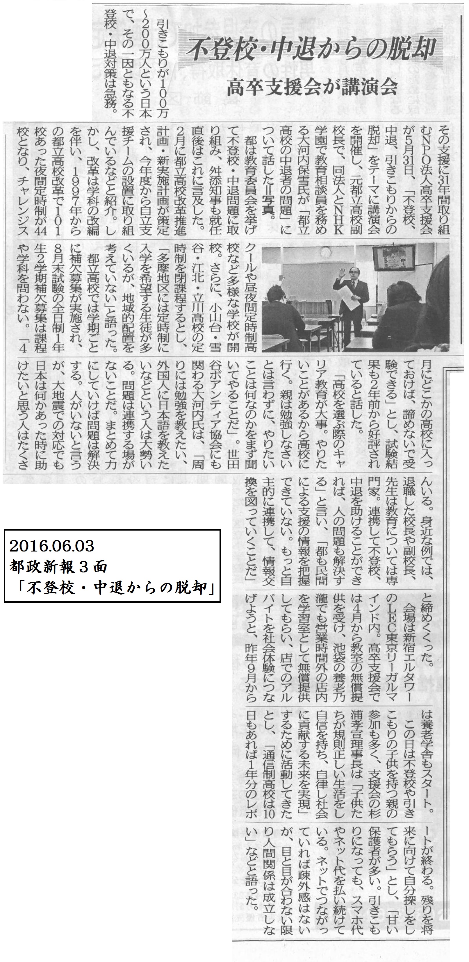 2016.06.03 都政新報 「不登校・中退からの脱却」