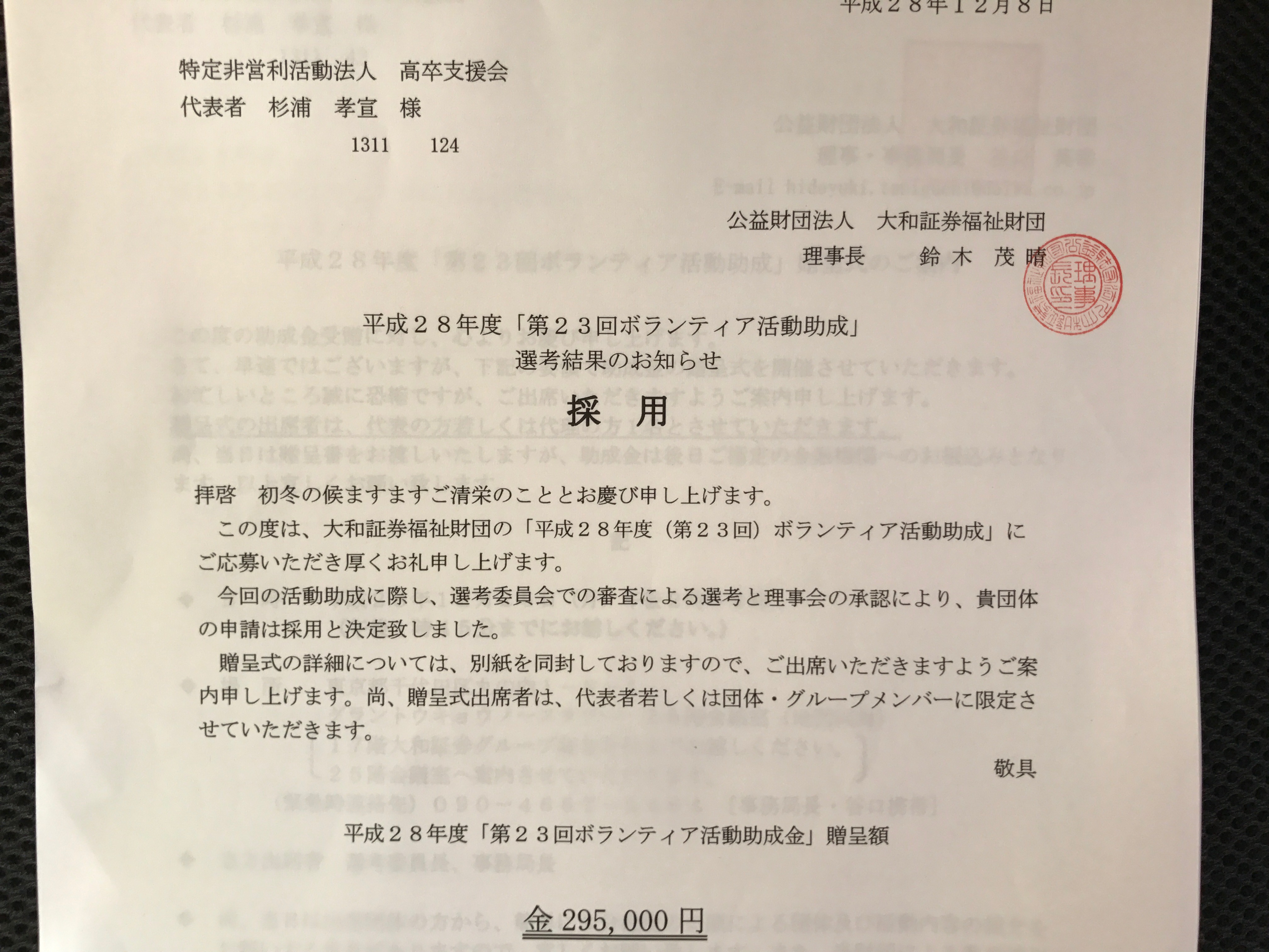 LEC東京リーガルマインドの学生インターンが申請してくれた、寄付が採用となりました。