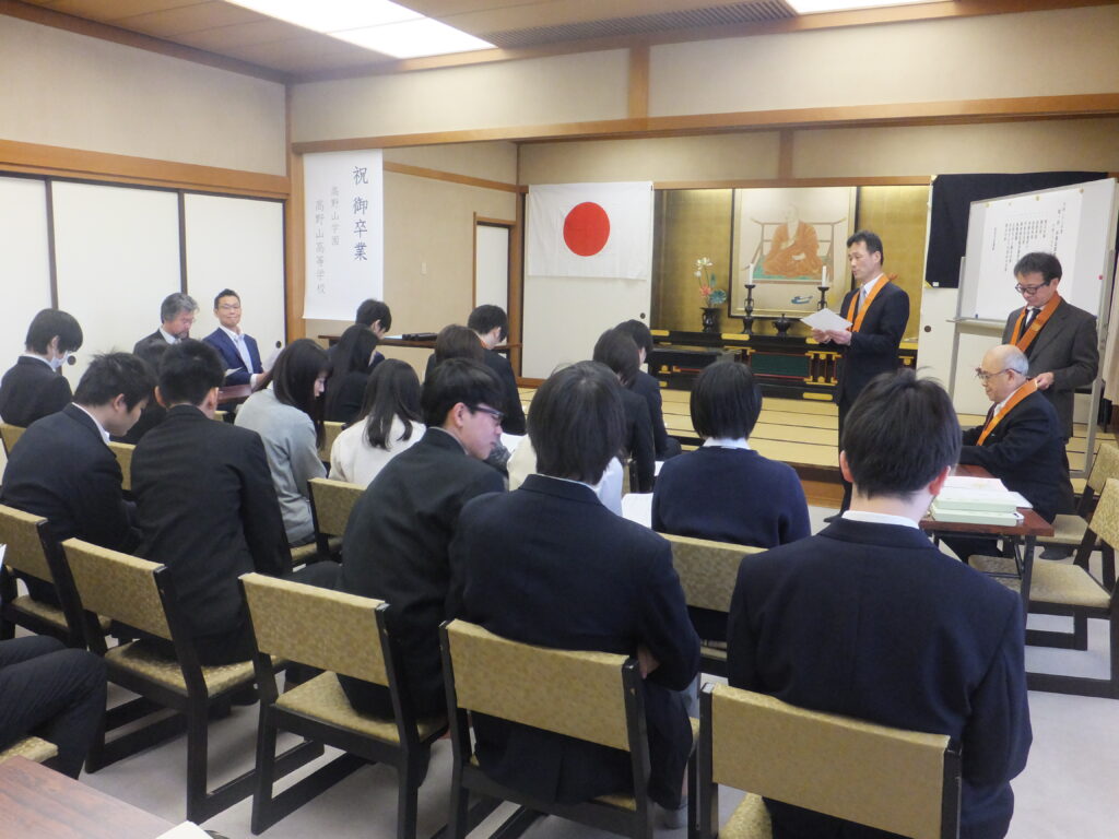 開式の辞から始まり、一般的な卒業式と変わらない形式で行われましたが、御法楽が組み込まれていて、高野山高校らしさを実感しました。