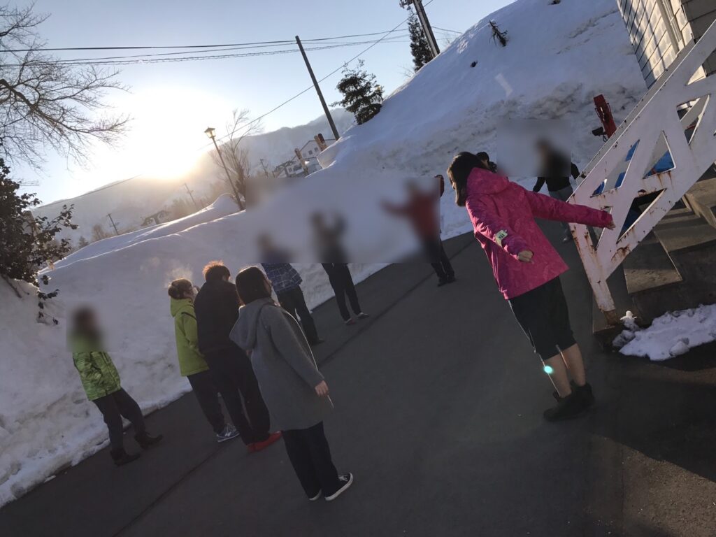 私は、その子に起こしてもらい?全員集合して外でラジオ体操をしました。新潟の朝は氷点下2度ほどで寒い寒い言いながら楽しく体操しました。
