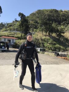 翌日はダイビングでした。まだまだ、水温が低く、寒かったですが、うつぼ、鰯の大群が見れました。久しぶりのダイビングだったので想定以上に疲れました。