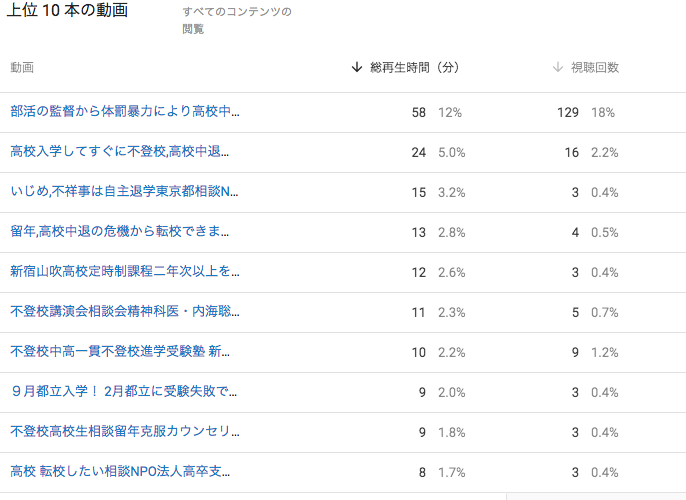 高卒支援会の公式 youtubeサイトはhttps://www.youtube.com/user/kousotsu15 6/10〜6/16日で視聴回数736/1日 105回、再生時間473分/1日67分 多いか少ないか? ご判断はお任せしますが、正直、全く面白くありません。不登校・高校中退、引きこもりだった子が立ち直ったインタビューや保護者の実体験ですから。もちろん、本当に困っている方にとっては参考になります!