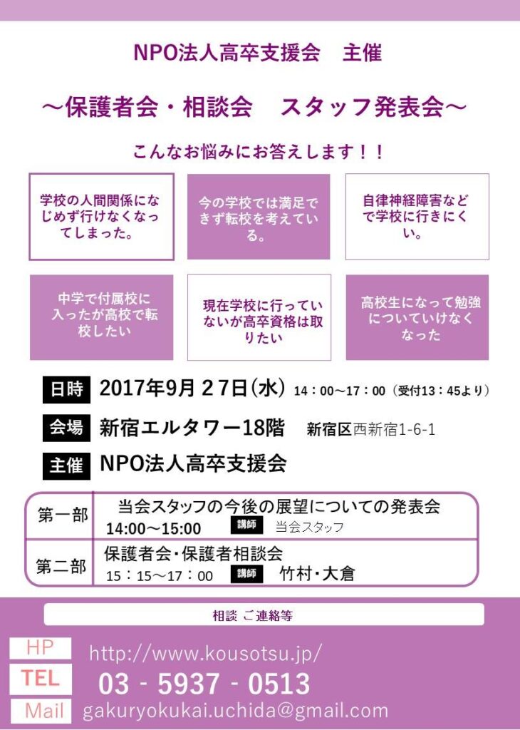 保護者の皆さん・不登校・高校中退・引きこもりでお悩みの方