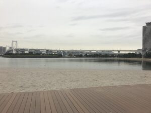 当初、レインボーブリッジを渡る企画でしたが、残念ながらレインボーブリッジが封鎖されていたため、コースを急遽、変更してお台場を一周するウォーキングになりました。