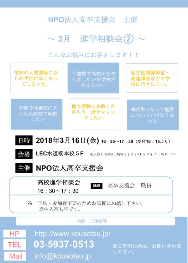 3月16日 高校進学・転学進路相談会
