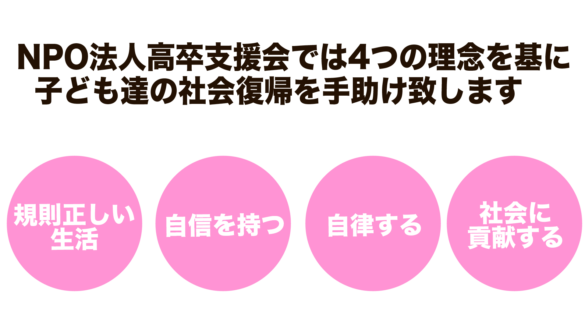 ①規則正しい生活>②自信をつける>③自律>④社会に貢献できる