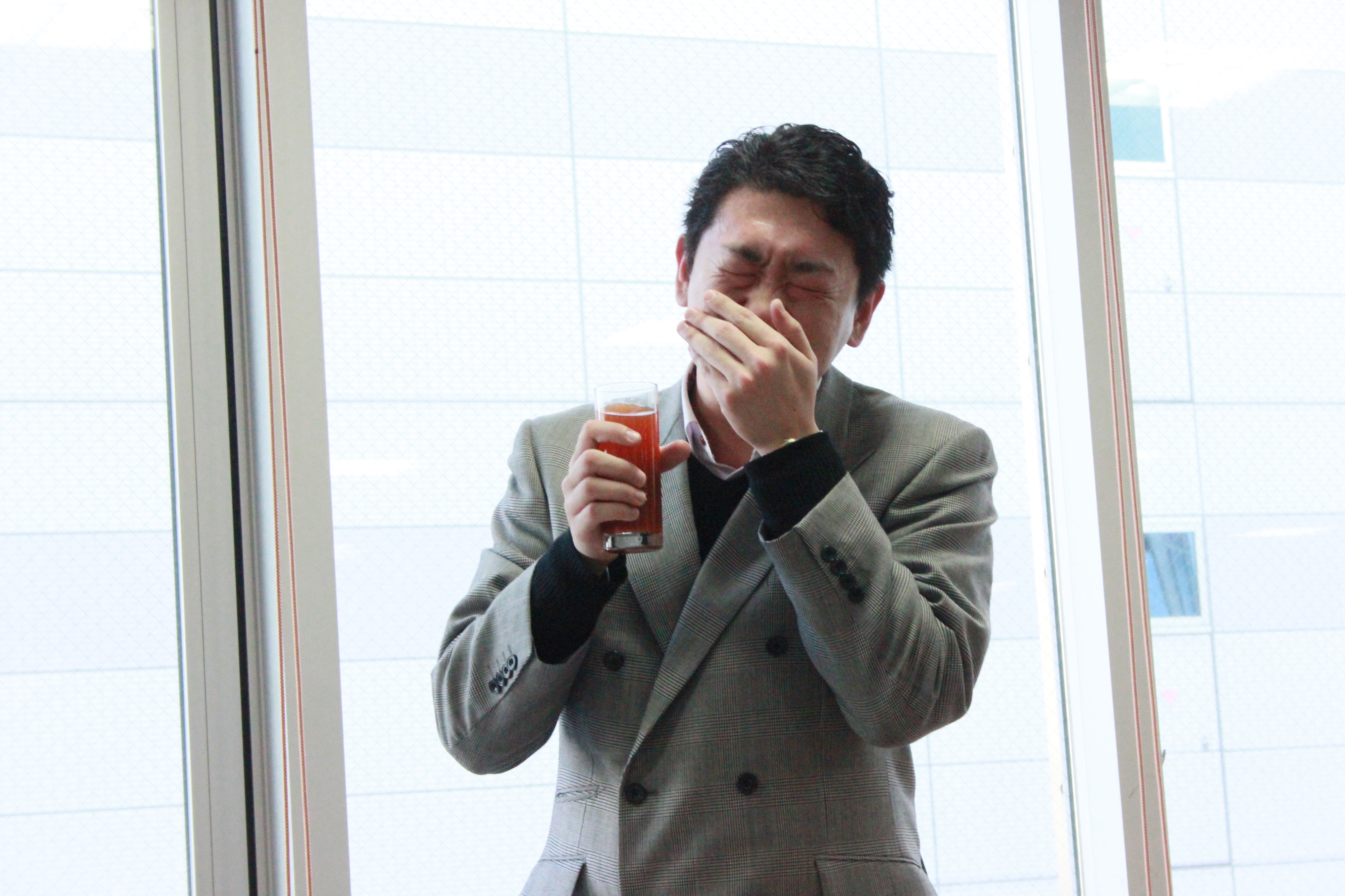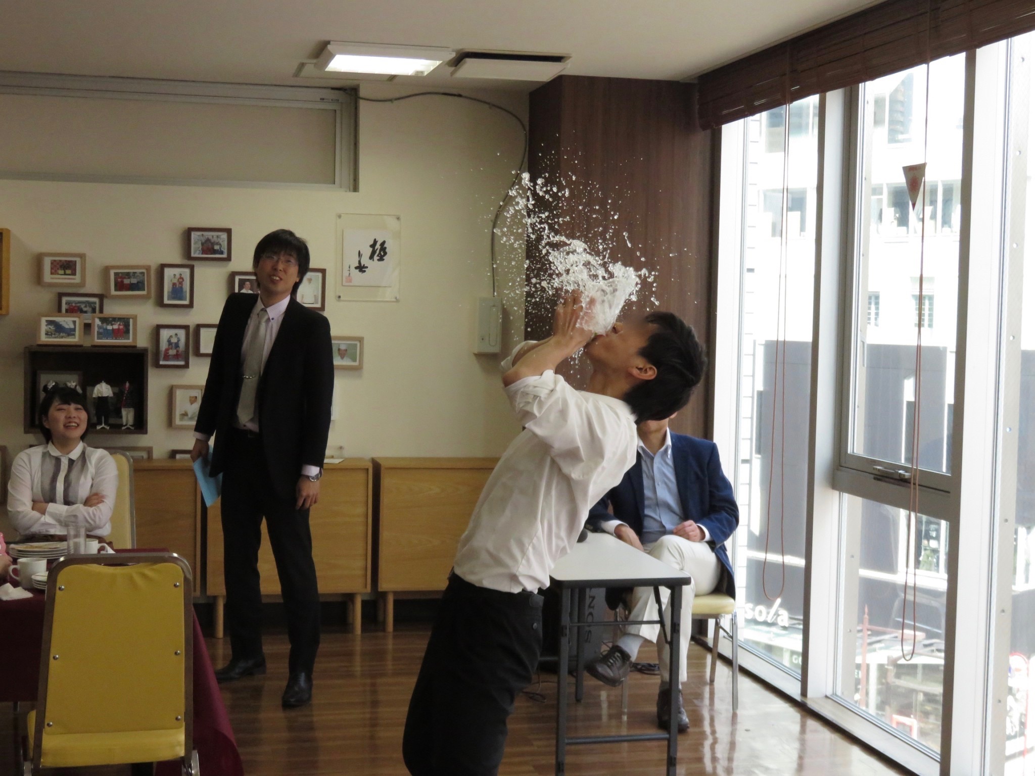 左 罰ゲームで三村先生、Deathソース入り、タバスコを食す 右 生徒会長&太原先生