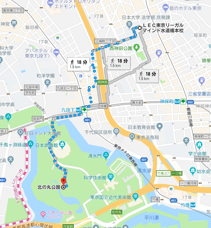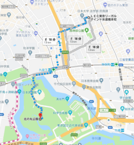 Iくんのいるお店から北の丸公園までは約徒歩30分。