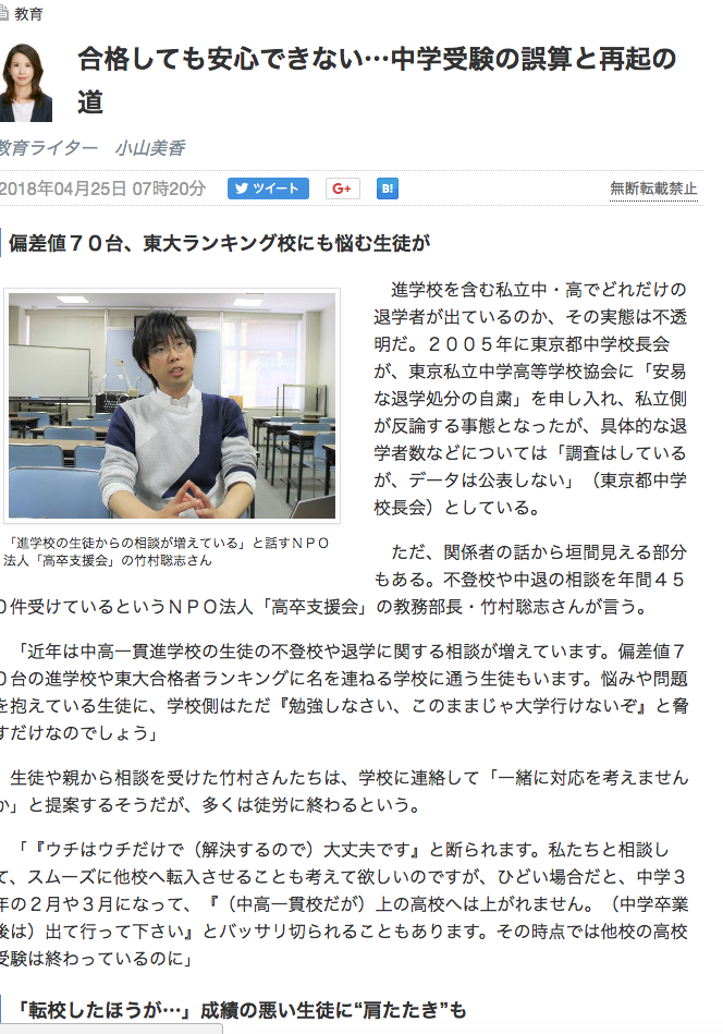 皆さん おはようございます NPO法人高卒支援会の杉浦孝宣です