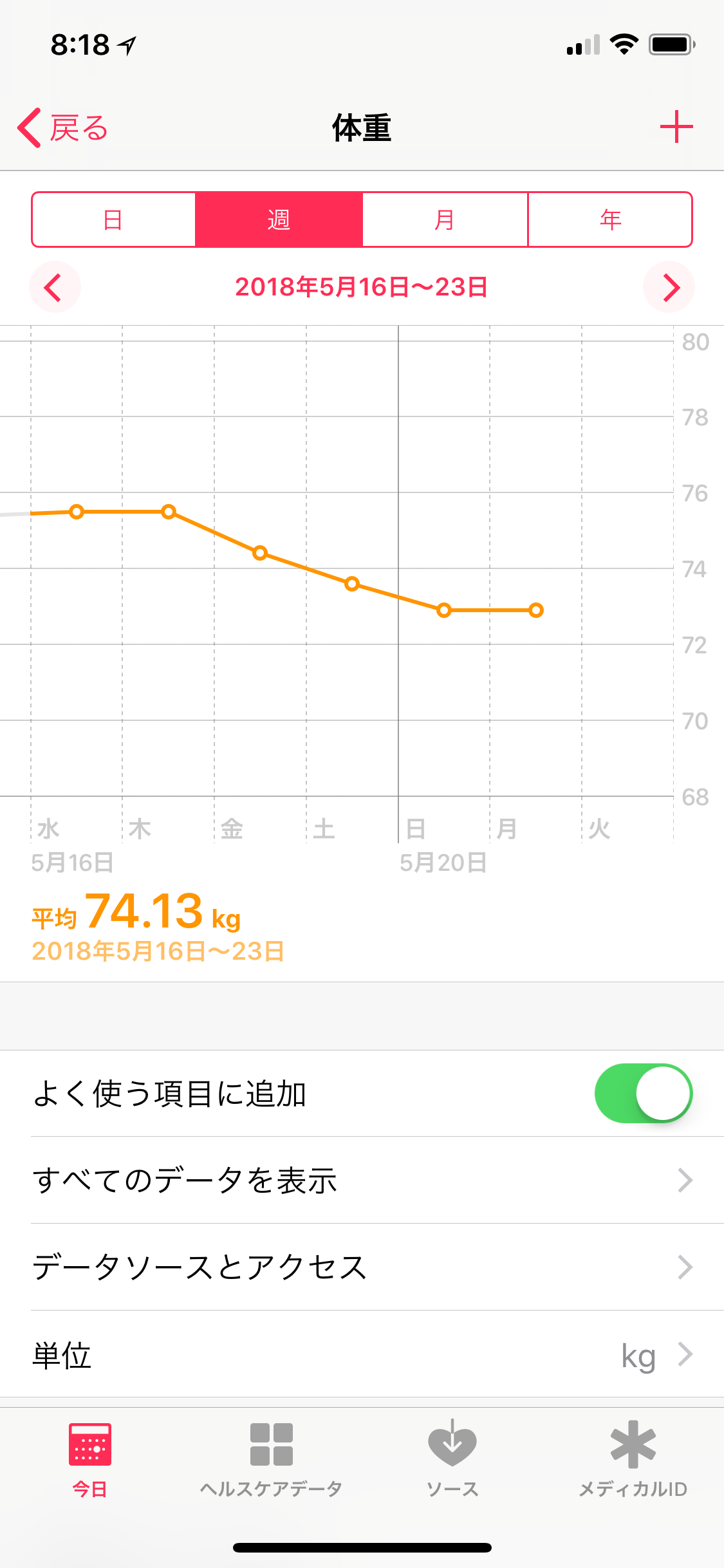 金曜日は75.5㎏だったので、週末断食をしました。結果は72.8㎏と適正体重に戻しました。初日の空腹感を乗り越えれば、何とかなるものです