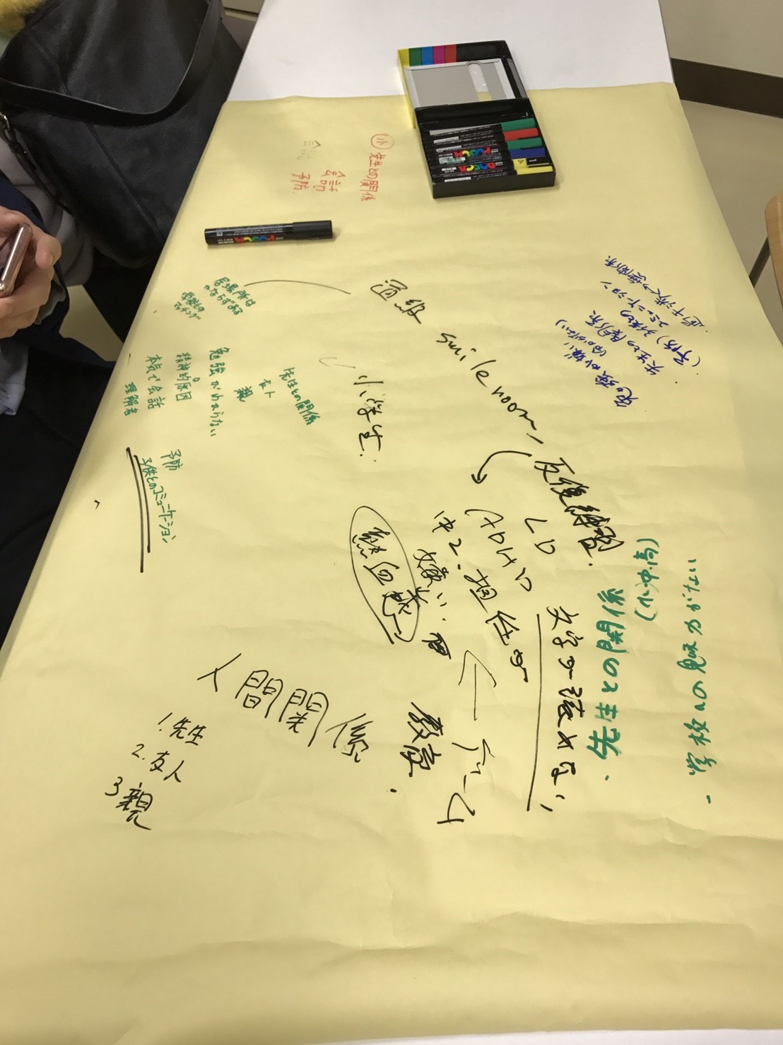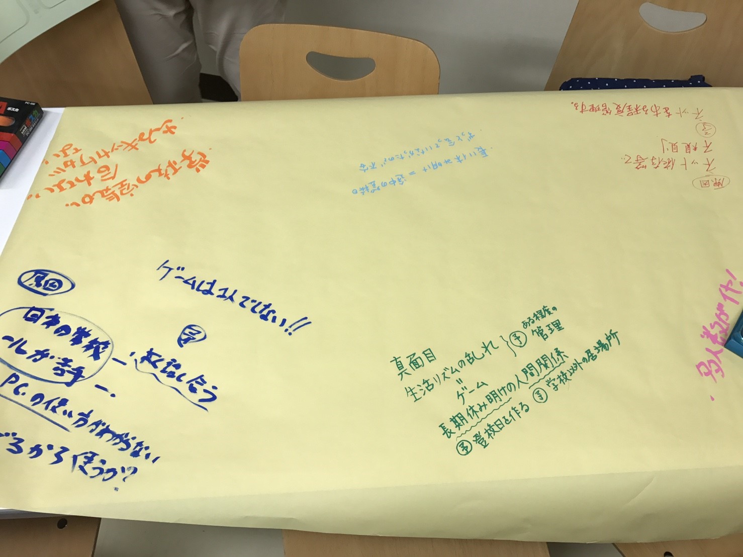ここで、各テーブルで移動しない人は私を含めて、不登校の専門家を各テーブルに配置しました