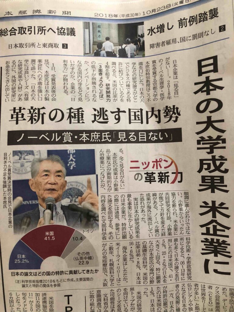本日の日経新聞 1面 日本企業は「見る目がない」と。