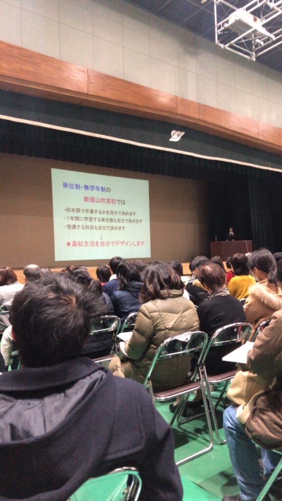 スタッフから新宿山吹説明会の報告を受けました。内申重視にしたので、例年、12月の補欠募集をしなかった。中退率が減ったとのこと。