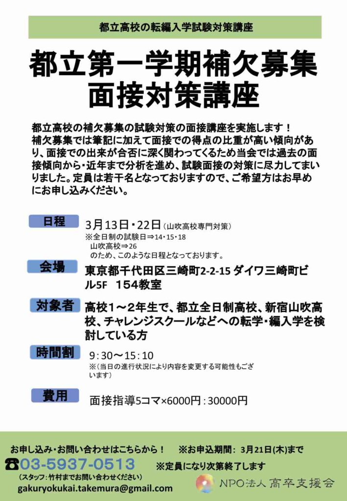 おはようございます。NPO法人高卒支援会の杉浦です。高校受験の二次募集、補欠募集(転編入学)と試験が続きます。