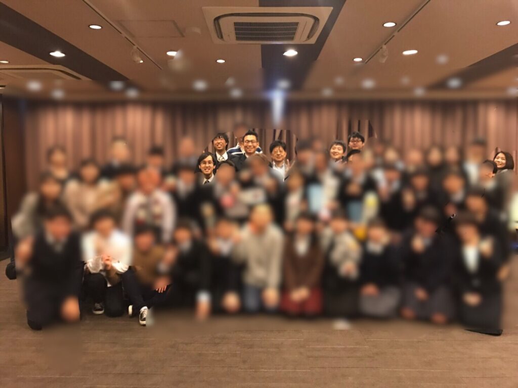 私から、「本日、高校3年生は卒業式を迎えましたが、就活や婚活まで(笑)まで、ご支援させて頂きます。先日も卒業生がテレビ局に就活したいと言う事で、今、私のカバン持ちのようなことをしてもらっているんです。また、現在、学生インターン 加藤(当会 OB)がが不登校の子をカナダに留学させる、クラウドファンディングをやっており、在籍生徒の中学高校生の中には希望者もいます。コチラも是非是非、ご協力をお願いします」と。