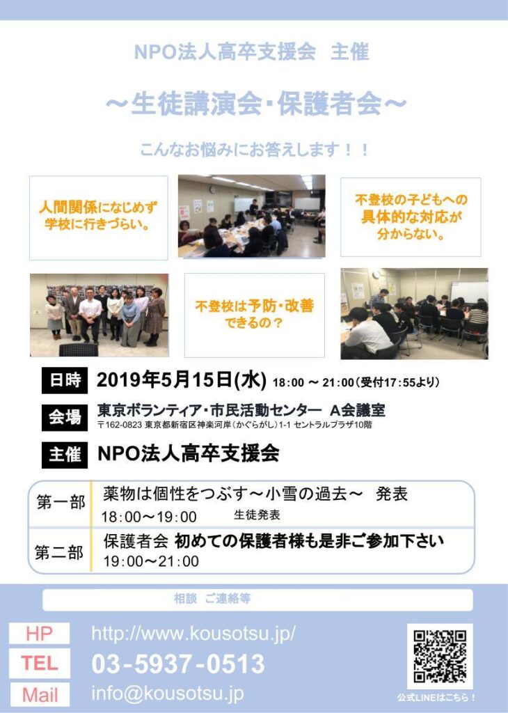 5/15日 18:00〜21:00 保護者会@飯田橋ボランティアセンター 在籍していない人でも見学できます。