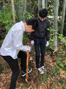 「今年はタケノコ不作の年だから、急斜面で、ある程度、深く、ぐいっと腰入れないと、出てこなかったんだ。」