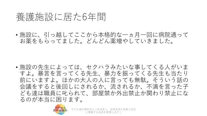 今回は児童養護施設に6年間、入っていた、小雪さんが精神薬をズッと飲まされていた、ヤバイ話しです。