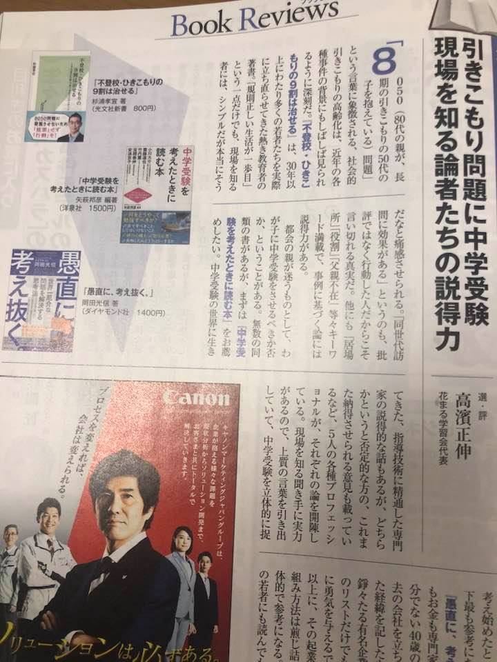 書評 都政新報は元都立高校校長、新宿山吹副校長、大川先生に。