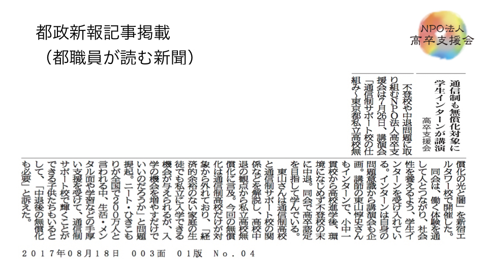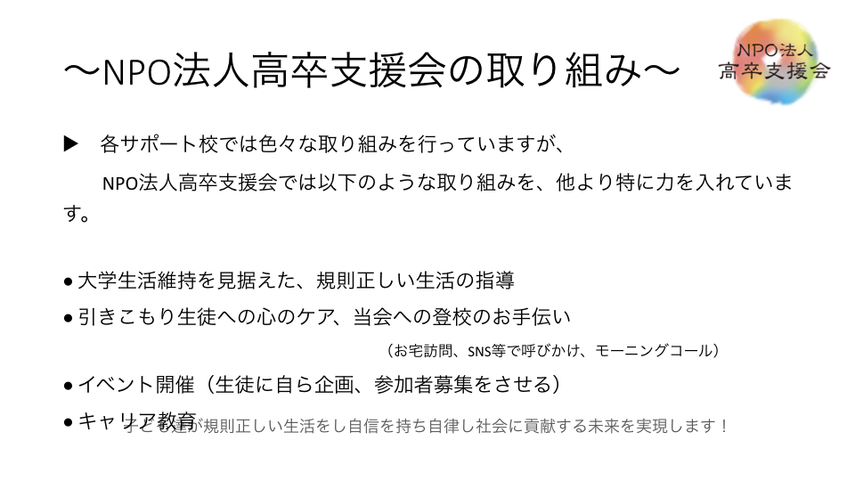 NPO法人高卒支援会の杉浦孝宣です。
