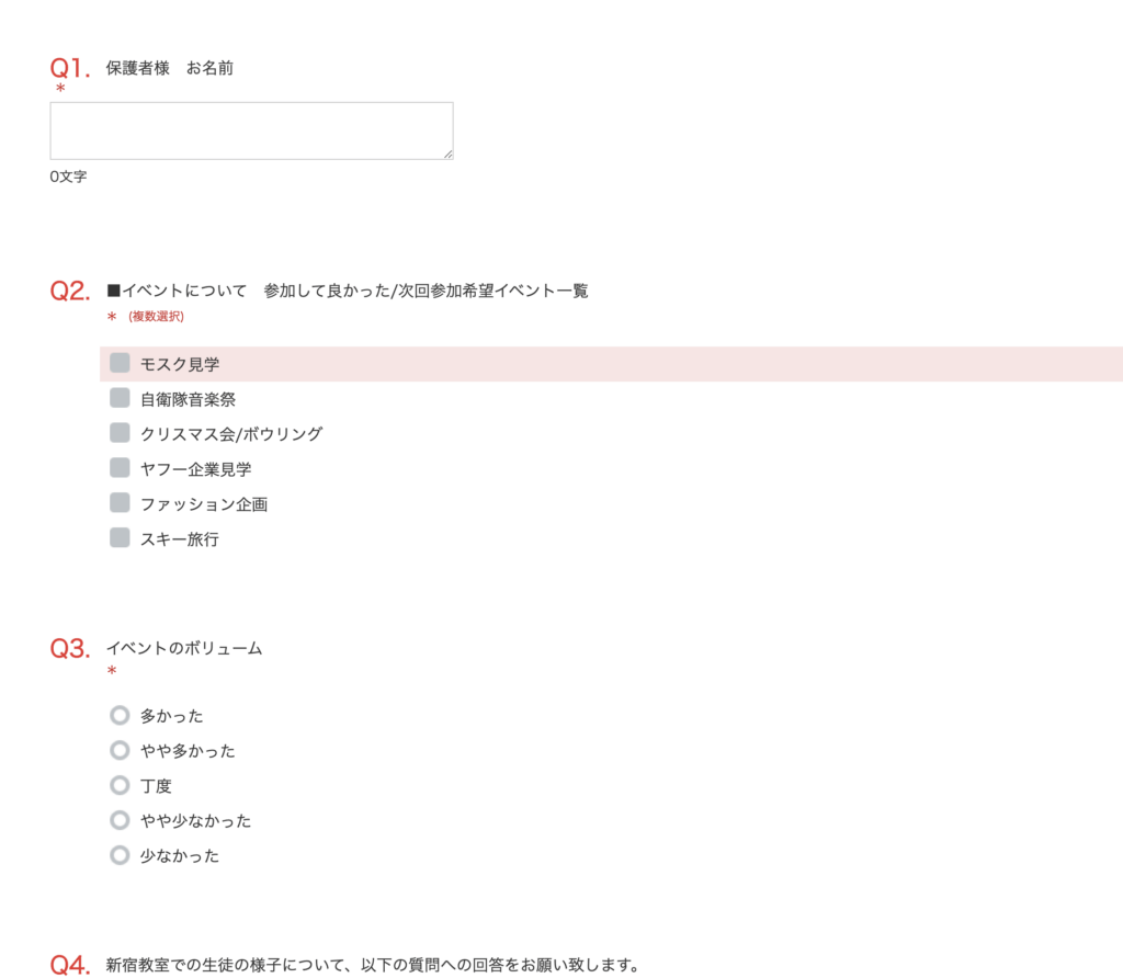 フリースクール部門 アンケートにご協力下さい