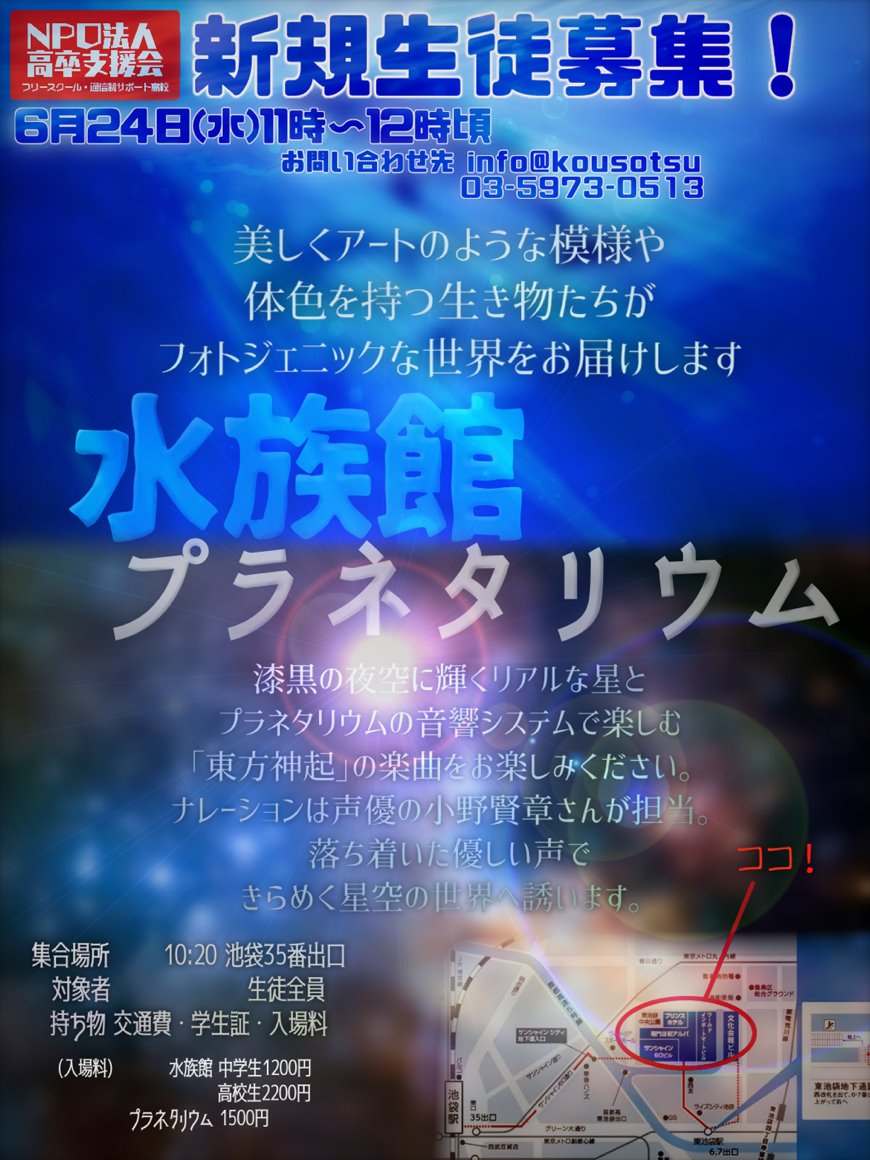 本日は池袋サンシャイン 水族館・プラネタリウム 引率します。子ども達、元気に送り出して下さいね