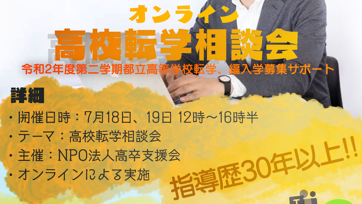 東京都立高校転学相談会を7/18、19日 オンラインで相談を無料で承ります。