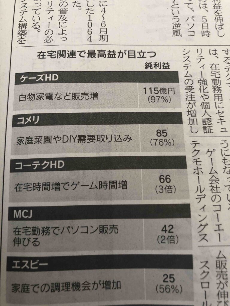 コロナの影響で儲かっている企業もあるのです
