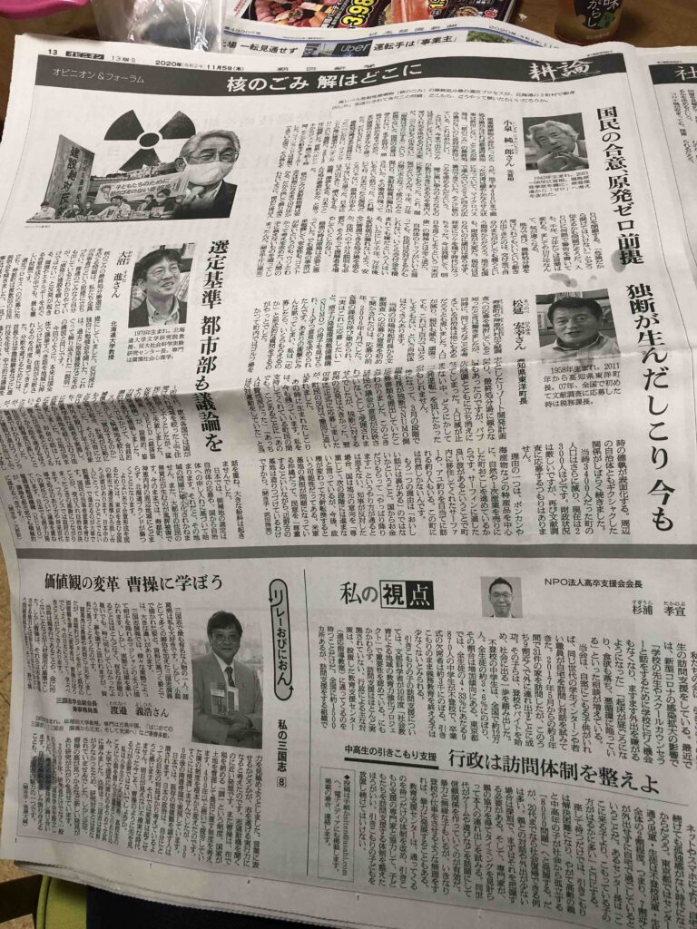 朝日新聞13面 2020年11月5日 (私の視点)中高生の引きこもり支援 行政は訪問体制を整えよ 杉浦孝宣 お読み頂ければ、幸いです。