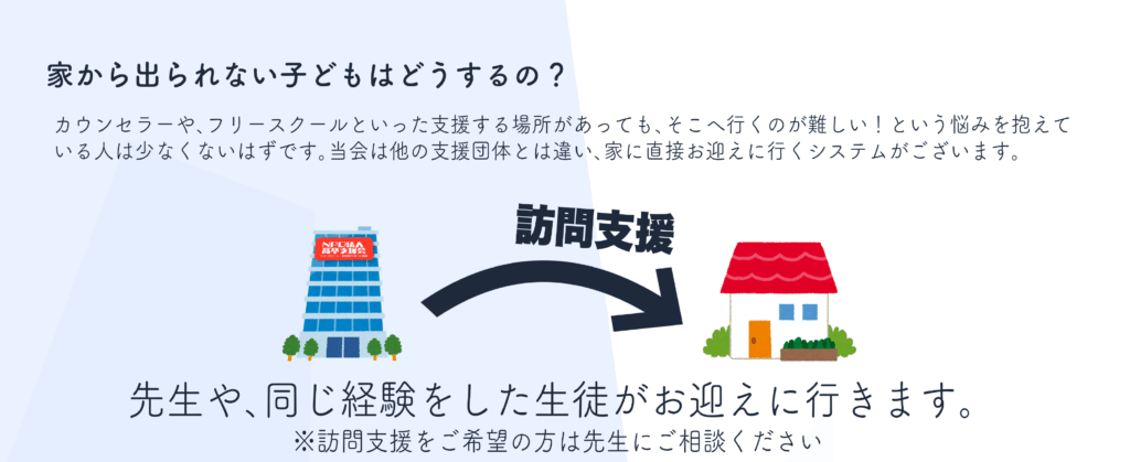 引きこもり中学生相談支援90%以上成功!@東京都 引きこもり中高生に対して、元引きこもり中高生が訪問