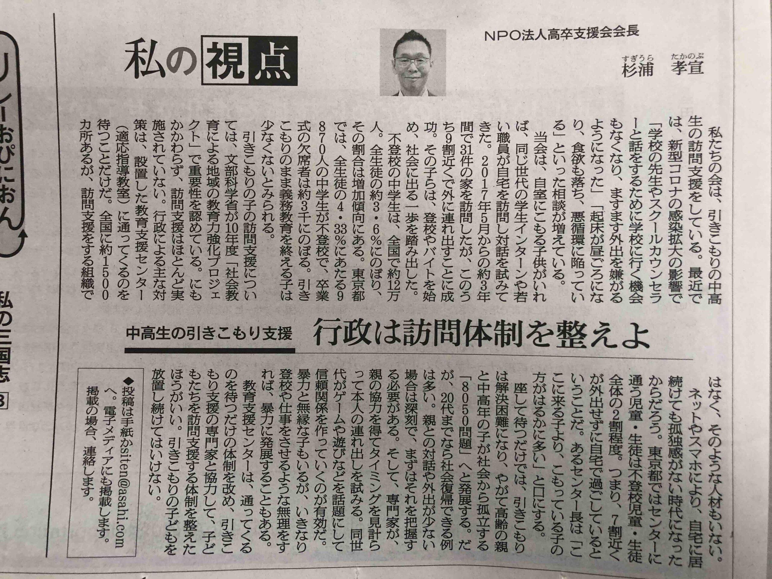 世田谷区要保護児童支援協議会 構成員のNPO法人高卒支援会 会長 杉浦です。 東京都世田谷区で不登校・高校中退・引きこもりで