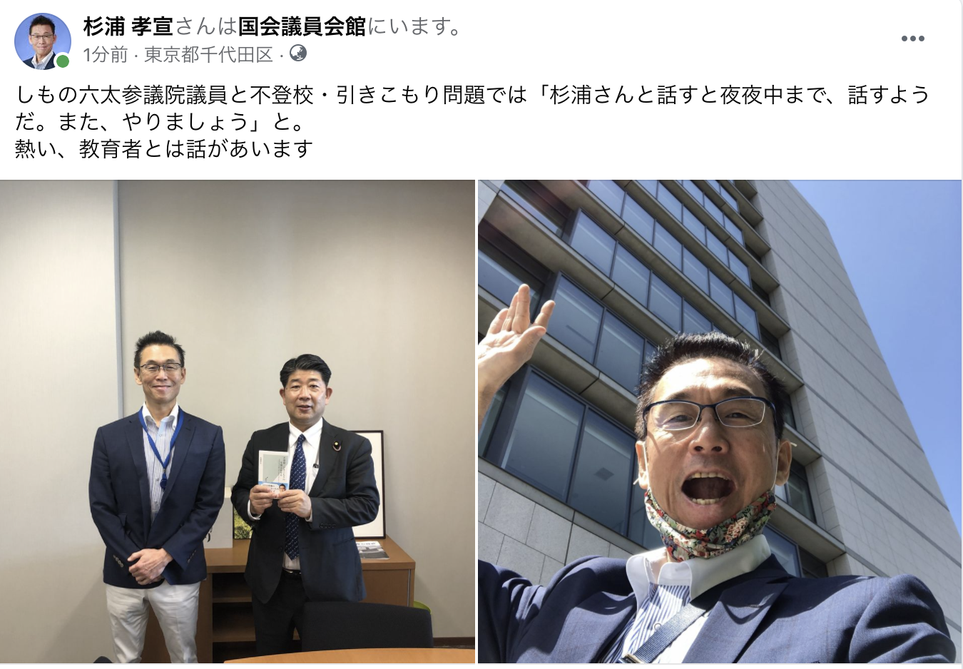 「杉浦さんは今まで、様々な人にこれを話したけど、あまり、相手にされなかったのではないですか? これは重要な事です。私も不登校・引きこもり問題は他のどの問題よりも重要であり、今すぐにでも対策を講じなければ、ならないと思います。私は徹底的にこれをやりますよ。」