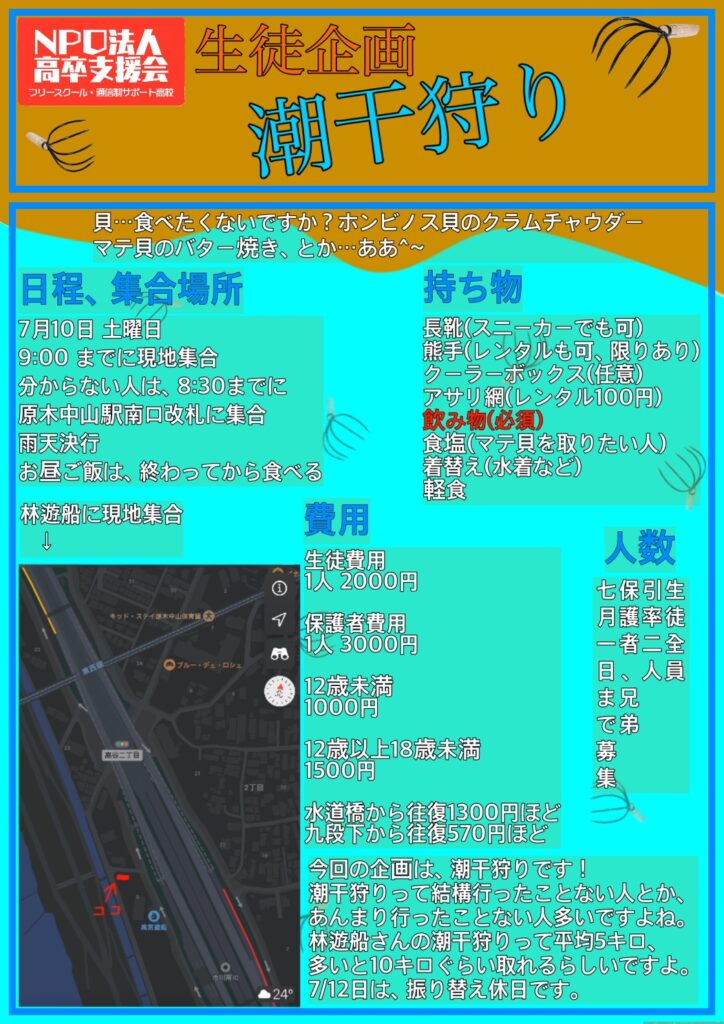 潮干狩り イベント 生徒だけでなく、保護者の方もご参加下さい。 スタッフも保護者さまと交流を深めることにより、ご家庭を理解して、