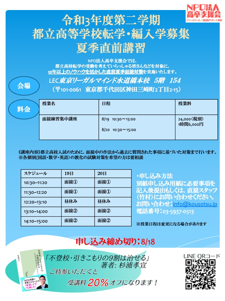 NPO法人高卒支援会 会長の杉浦です。東京都立転編入学講座 開催中