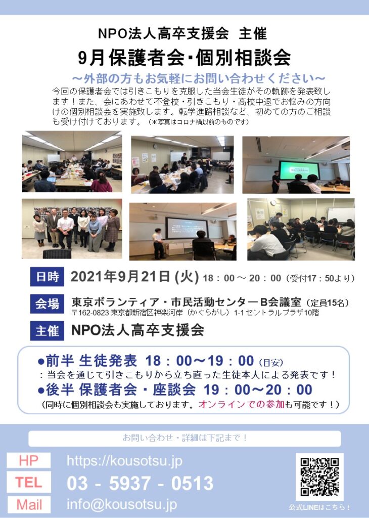 当会は引きこもり支援がウリのフリースクール・通信制高校サポート校です。3年間40件の引きこもり 成功率90%以上