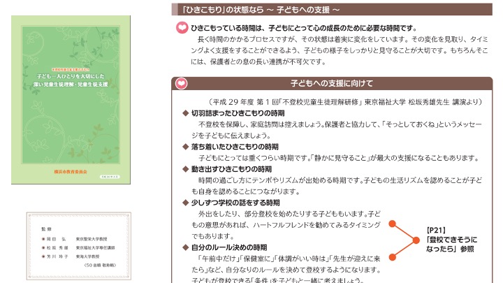 教育委員会の不登校指導手引きを直ぐに改めるように提案申し上げました。
