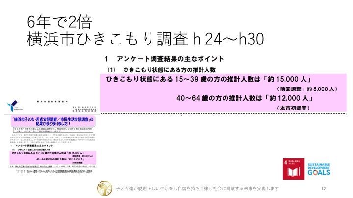1/11日、横浜市議会にて、講演させて頂きました。横浜市は引きこもりが6年で2倍となりました。