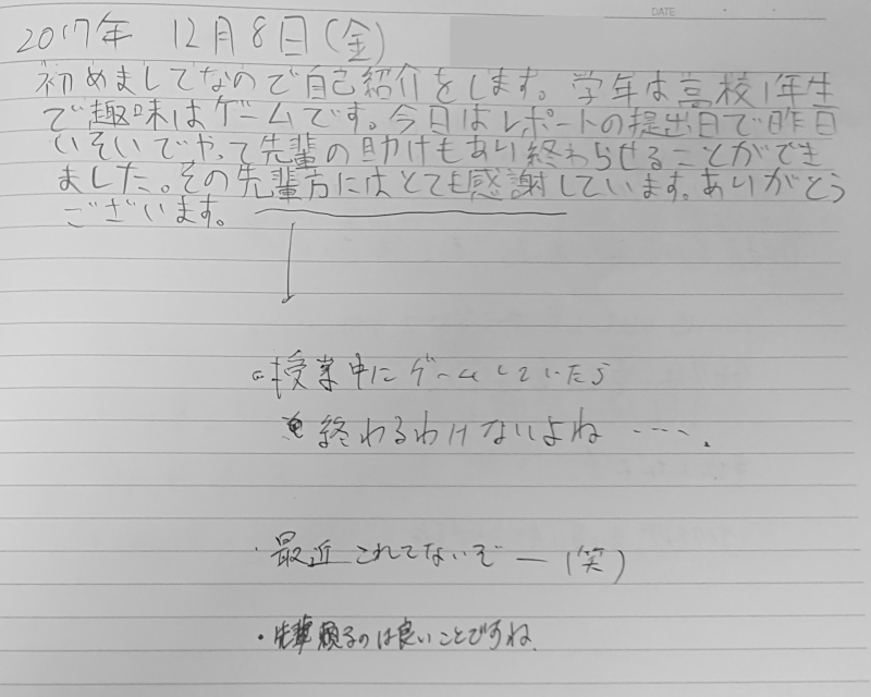 不登校塾・フリースクール 不登校中学・高校生の交換日記 @東京都新宿エルタワー・水道橋 その③