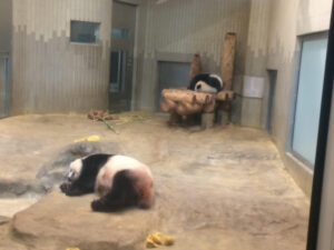 ほら、どうです?これがかの有名なジャイアントパンダですよ。猛暑でぐったりとしていて可愛らしいでしょう?