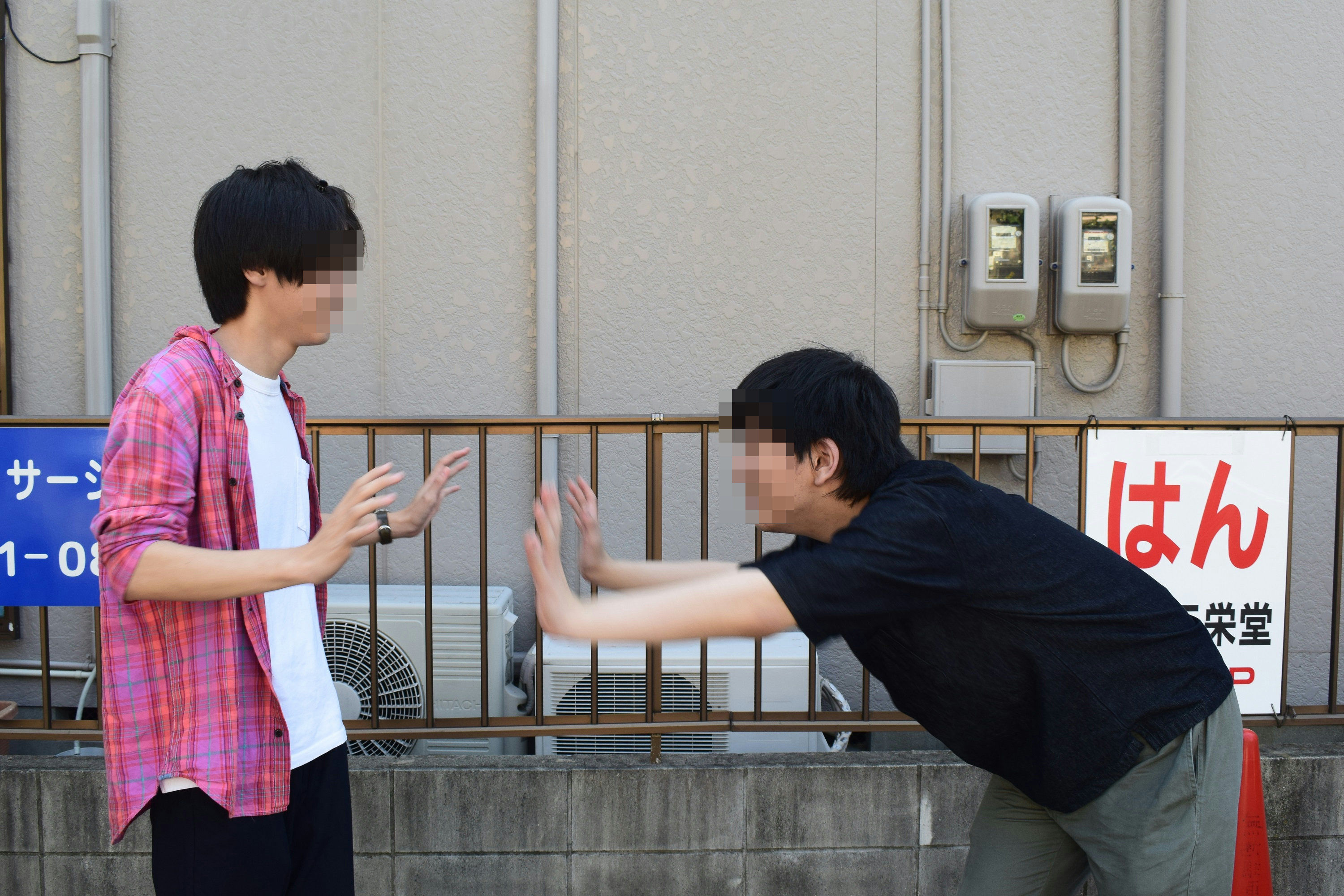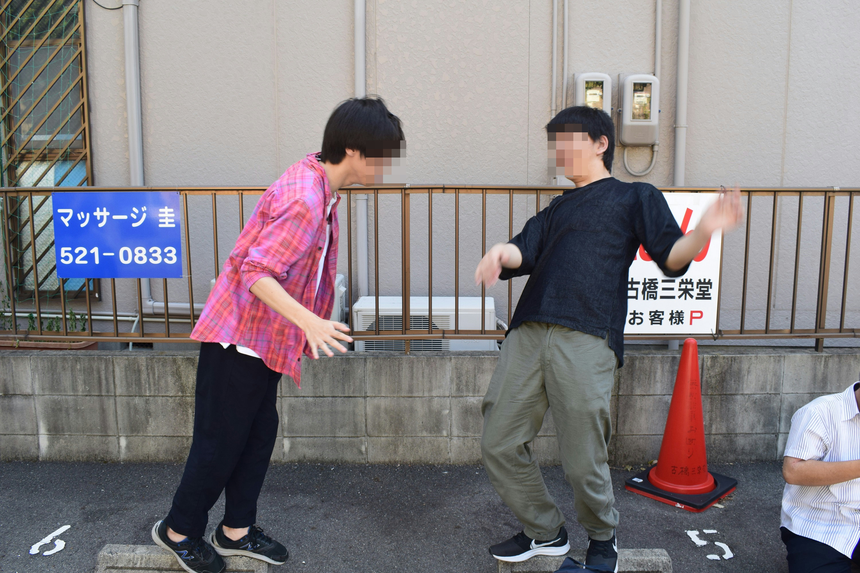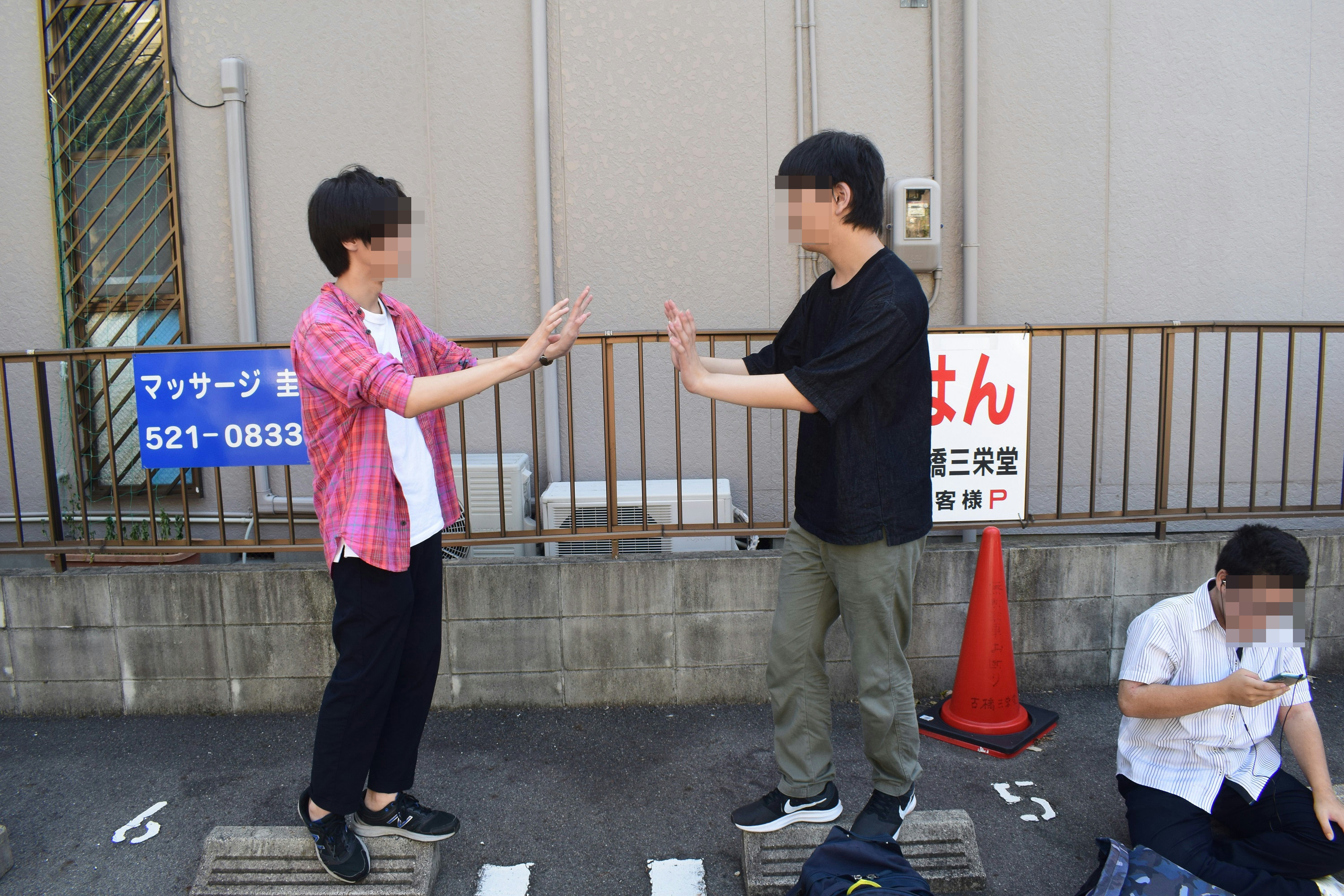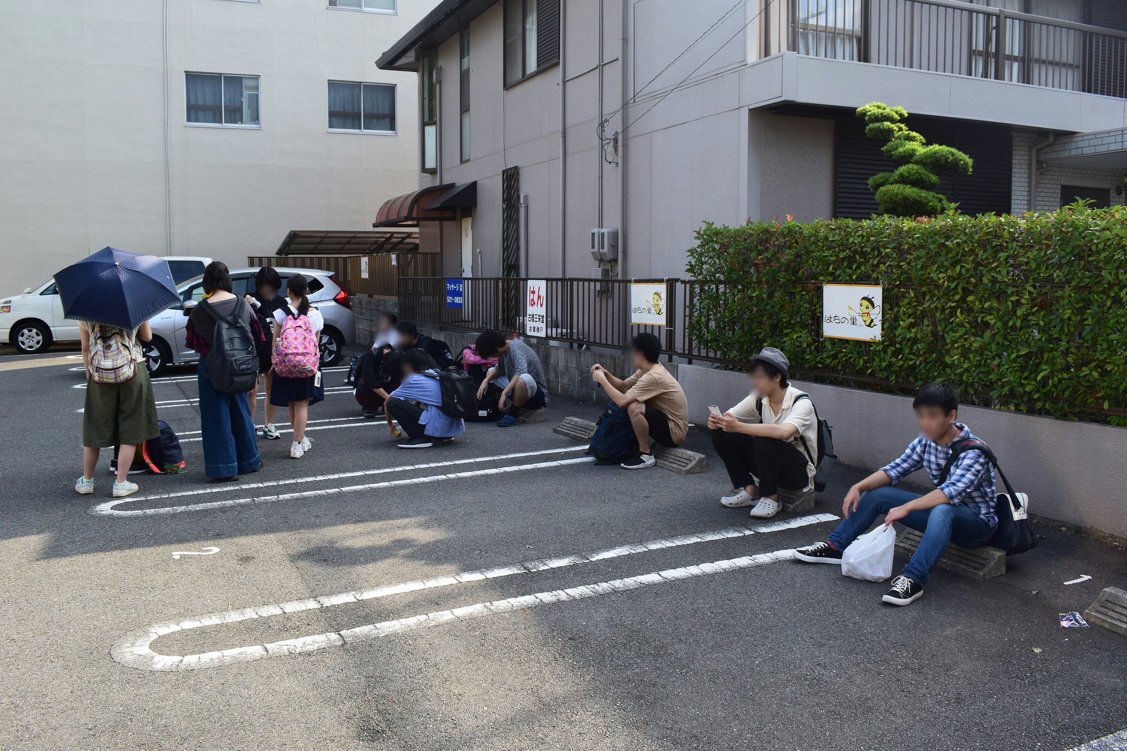 駐車場でたむろする高校生←