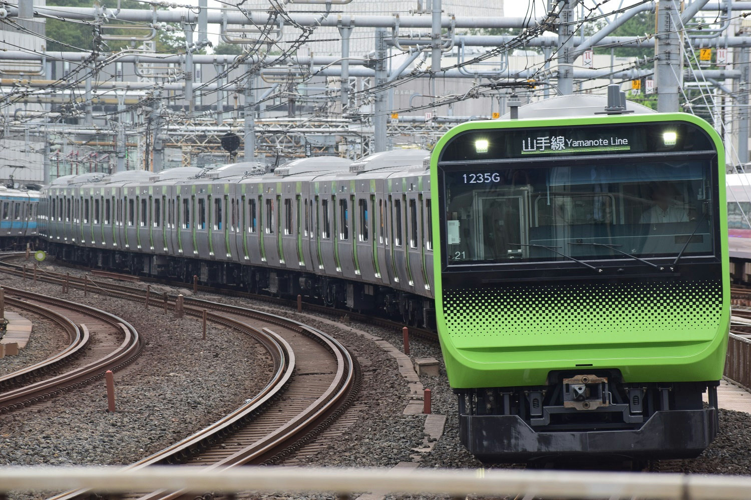 ホーム端から撮影しているので、列車が真横に入線します。