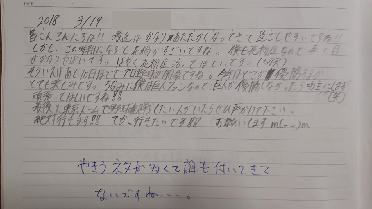 [冒頭文] 2018年3月16日(金) Yくん