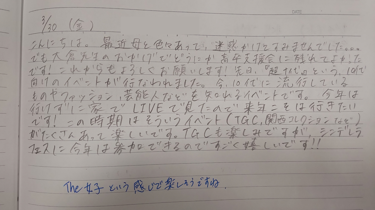 不登校塾・フリースクール 不登校中学・高校生の交換日記 @東京都新宿エルタワー・水道橋 その㊿