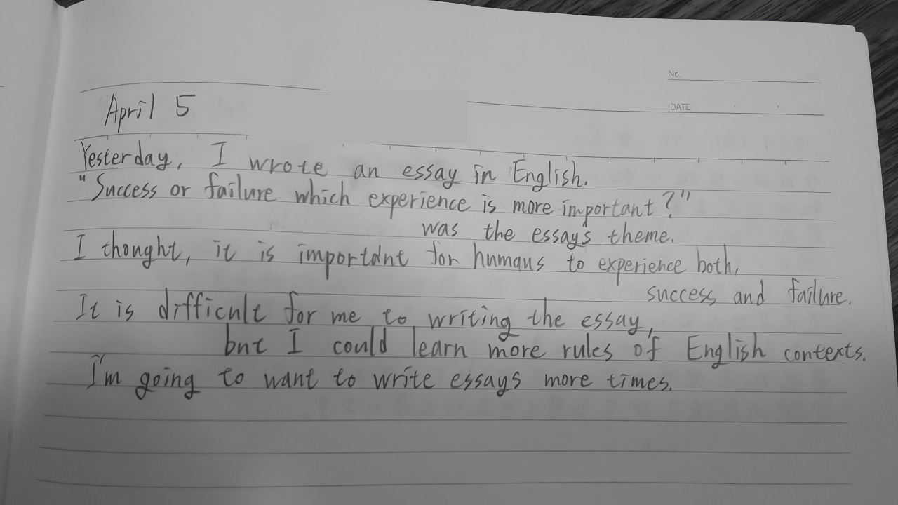 It is difficult for me to write the essay, but I could learn more rules of English contexts.