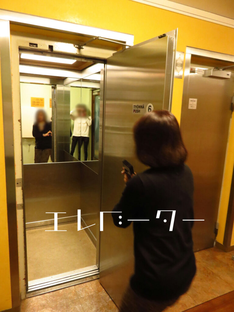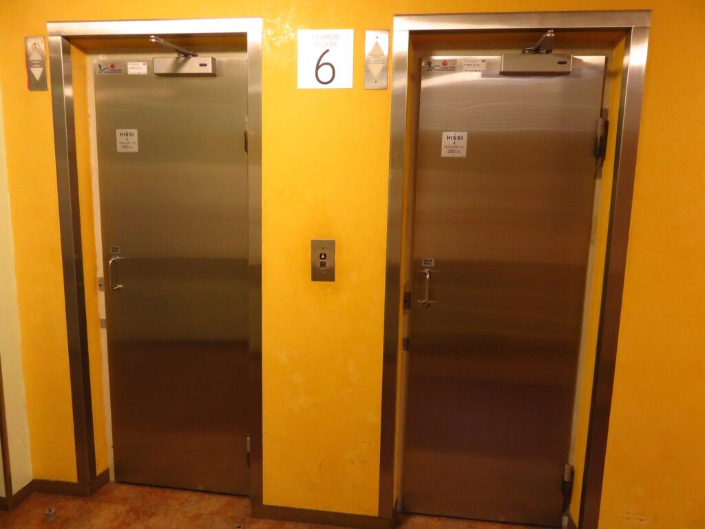 向こうではたまに開き戸型のエレベーターがあります。