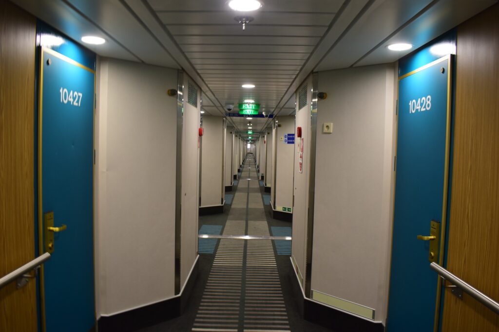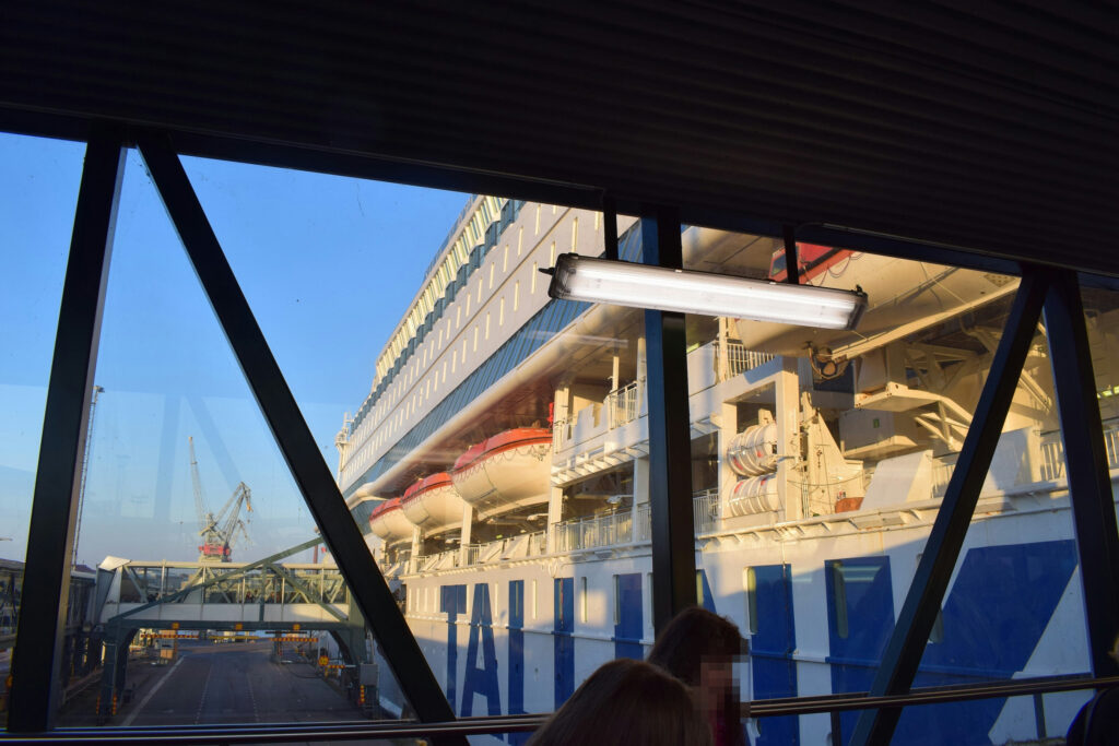 部屋が船の最後尾にあるので、大型客船1隻分を歩かなければなりません。