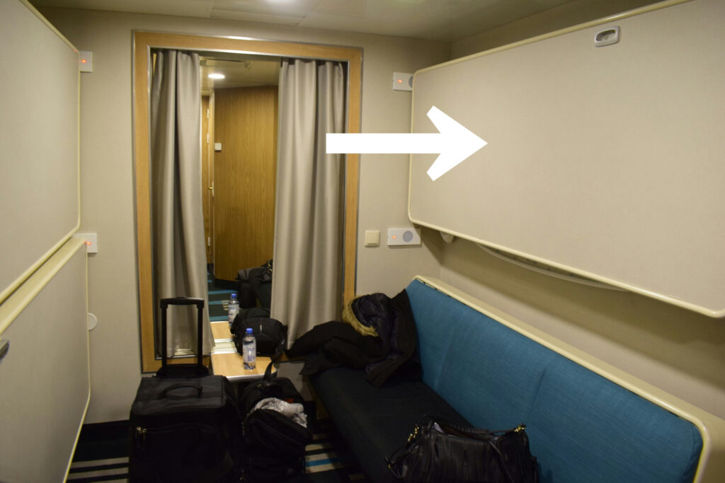 午後9時です。次の日の昼まで停泊するから寝てけよっていうプランです。